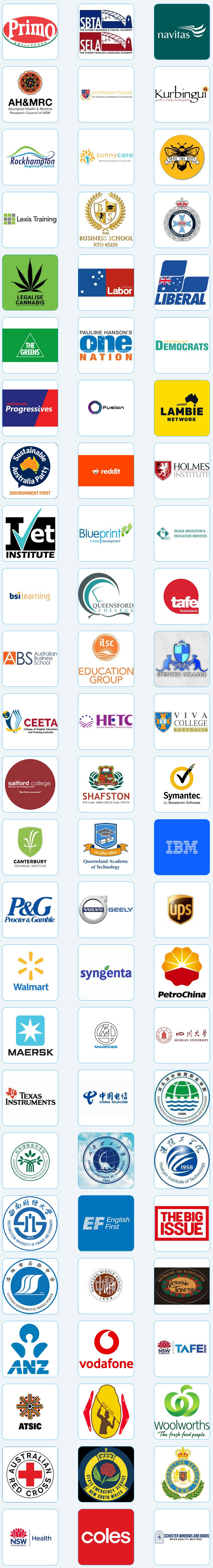 I have provided services to the following organisations: