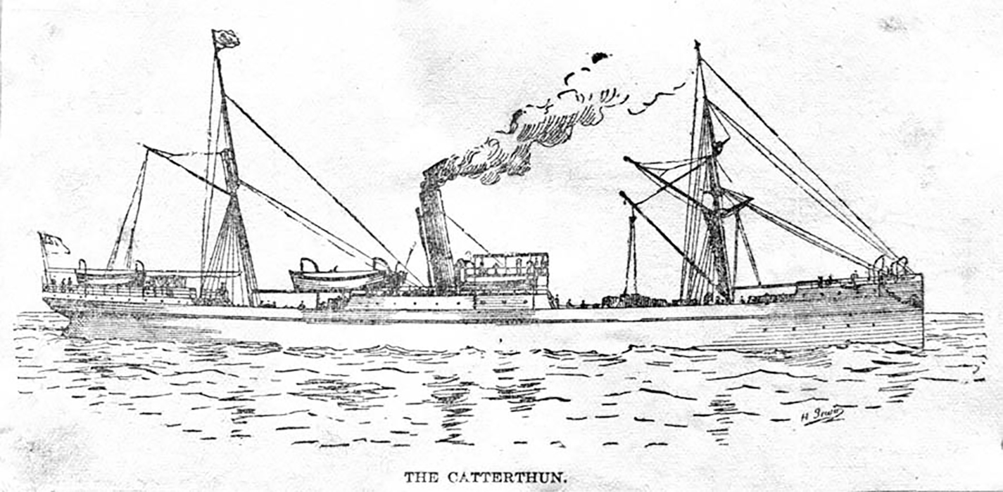 Number one lifeboat was successfully launched but other passengers, including fifteen Chinese passengers returning from the goldfields, remained on board. The Catterthun’s surgeon and the Chief Steward remained with them as the steamer sank in the stormy sea.