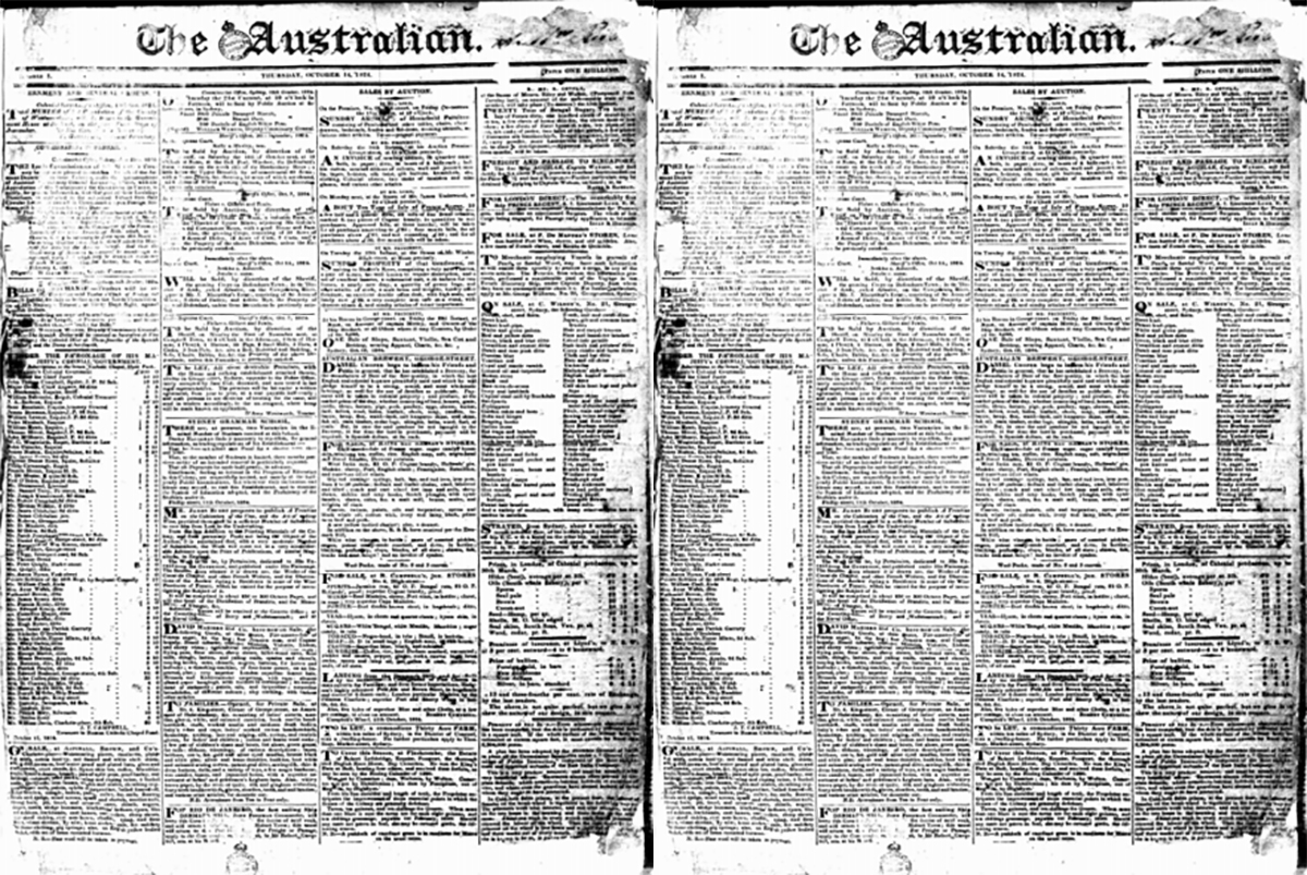 The first printer of The Australian was George Williams (c1784-1838). The paper initially appeared weekly, and then, from April 1826, bi-weekly. It appeared three times a week from October 1838. It usually consisted of four broadsheet pages.