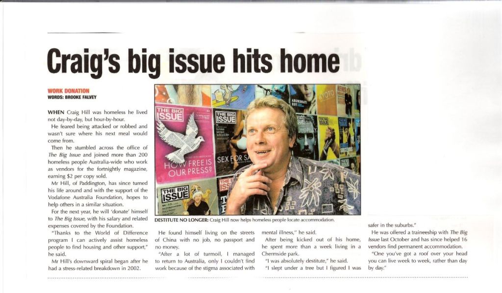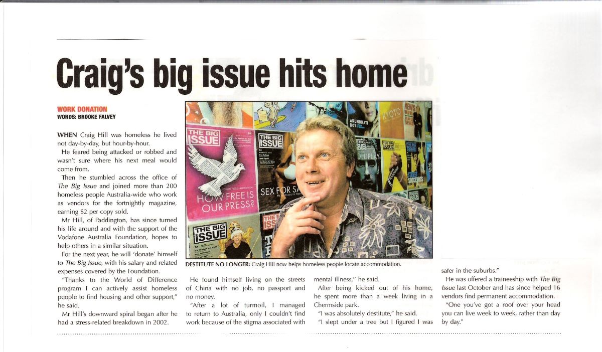 In 2005 I was in Brisbane, Australia, working for Big Issue Magazine. It was here that I got to help the homeless get off the streets.