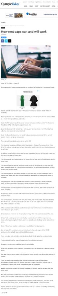 Rent caps already exist in the ACT, which has been put forward by the Tenant’s Union of NSW as a model other jurisdictions could follow.