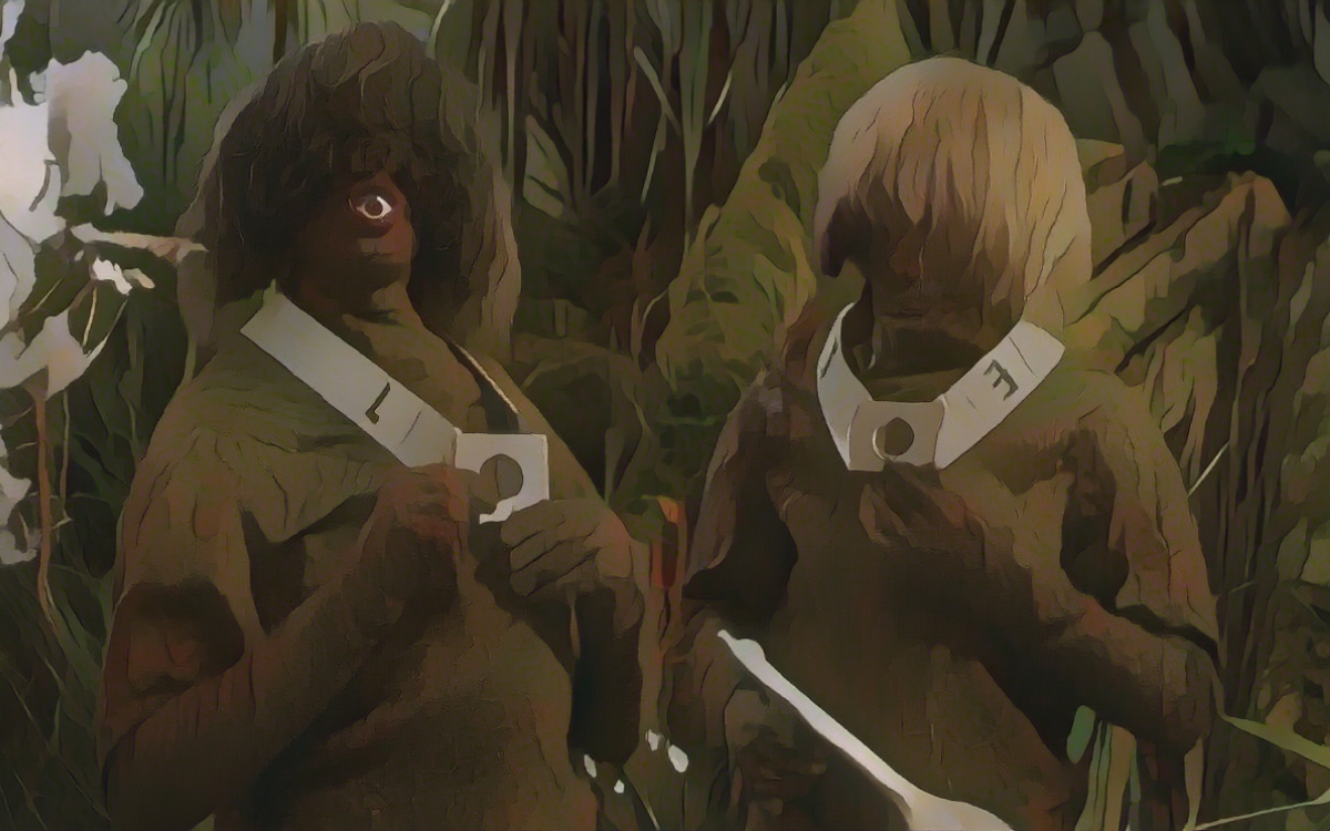 The TARDIS lands in the same jungle deck, but centuries have passed. The great statue is finished, and its head is a Monoid’s. The Doctor, Steven, and Dodo step out and are seized. Monoids now rule the Ark; humans are servants. The Monoids wear voice devices and give numbers as names. One is the leader. He orders the ship to complete its journey to Refusis and says the humans will be “controlled” there.