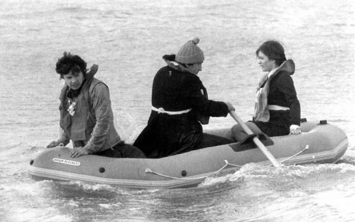 Back at the command centre, the Doctor realises that the sea creatures are sensitive to high-pitched sounds, and he rigs up the centre’s equipment to loop and amplify a recording of Victoria’s screams into the pipes which lead to the central rig. The creatures invading the command centre through the impeller are also destroyed this way, using hand-held speakers. Through the video link, it is clear the foam has dissipated and all of the humans have returned to normal, including Robson and Mrs. Harris.